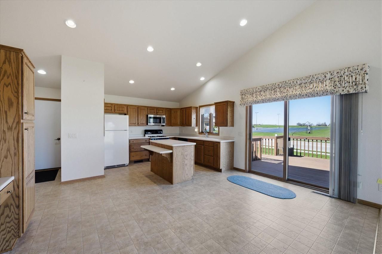 This condo was custom built to be wheelchair accessible. Spacious floor plan includes the kitchen with a generous amount of cabinets, island and loads of storage. Open through the dining and living room with cathedral ceilings and two sets of patio doors leading to the wrap around deck. Includes 2 bedrooms and 2 baths. The Primary Bath has step free tile shower. Laundry is on the first floor. Huge Lower level Family room is accessible by electric wheelchair lift. Basement is partially exposed and egress windows overlook the Common Area pond. Third full bath is partially completed. The 2 car garage is attached and the roof is 4 years old. Don't miss this one!!