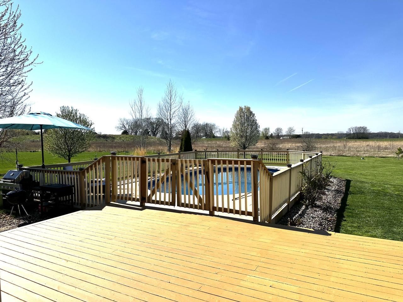 Custom built by Korndoerfer and located in conservation neighborhood. This dramatic floor plan offers a two story great room w/Brazilian pecan floors, fireplace, and open staircase. Fabulous kitchen with oak floor, island, granite counters, stone backsplash, two pantries, stainless appliances and generous casual dining area w/patio doors leading to huge deck. First floor primary suite with walk-in closet and private bath w/huge walk-in shower. Upstairs includes 3 bedrooms w/generous closet space, full bath and a loft/sitting area. Beautifully finished basement with rec room, kitchenette, full bath, workshop and storage area. Plenty of room to play in the big back yard with above-ground pool and expansive deck. Gorgeous sunsets!!!! Excellent location close to I-94. Yorkville schools