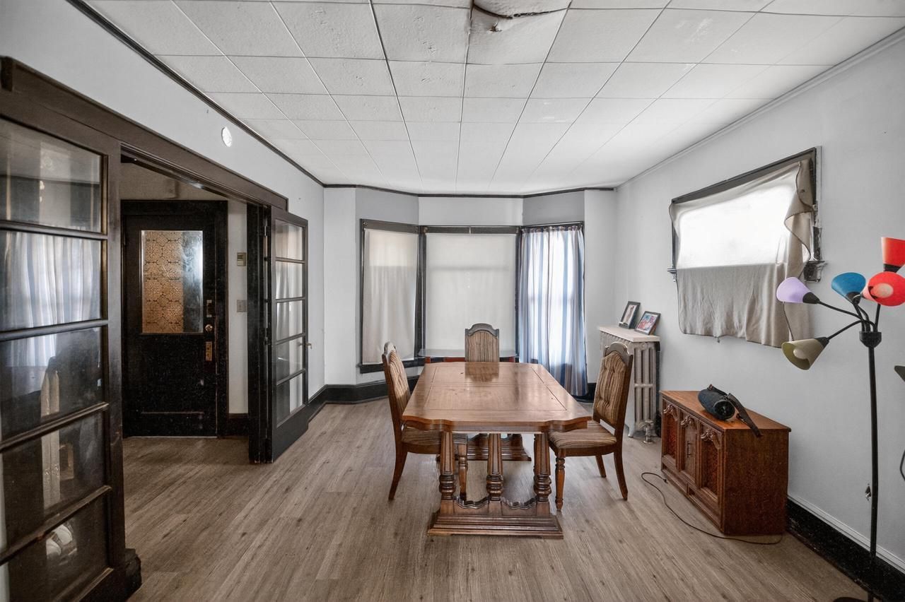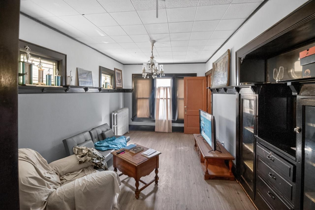 This home is situated near Kilbourn Reservoir Park, the Milwaukee River, and Lake Michigan! 2-bedroom, 2 full-bath home blends character with natural woodwork throughout. The living room features a built-in entertainment cabinet with perimeter shelving, ideal for display and storage. Enjoy gatherings in the formal dining room accented by elegant french doors. The kitchen comes equipped with a stove and refrigerator, ready for everyday living. Step outside to a fully fenced yard, offering privacy and space for relaxation, pets, or entertaining.