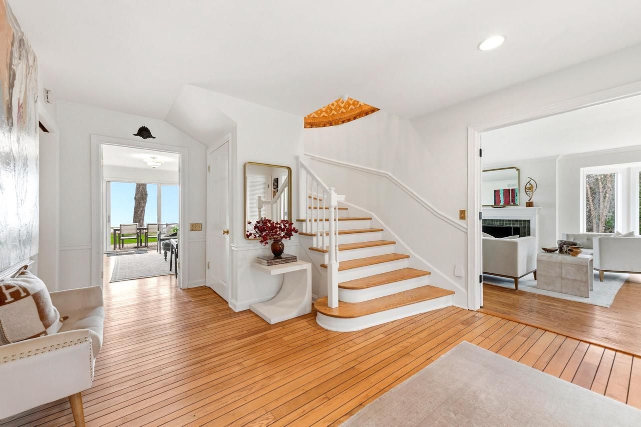 Tucked along coveted North Beach Drive in Fox Point, this exceptional home offers a rare setting just across from Lake Michigan and private beach. Enjoy a quiet, secluded atmosphere surrounded by mature trees and lush landscaping that create a true sense of privacy.Wake up each morning to stunning Lake Michigan views from your primary bedroom, complete with a walkout balcony. Inside, choose between a luxurious living room or a cozy family room with a fireplace both offering inviting spaces to relax and take in the lake views.This spacious 5-bedroom, 4.5-bath residence also features a finished lower level with a versatile bonus room, ideal for work or play. Take in beautiful lake views while enjoying your own backyard oasis, complete with a tranquil pond.