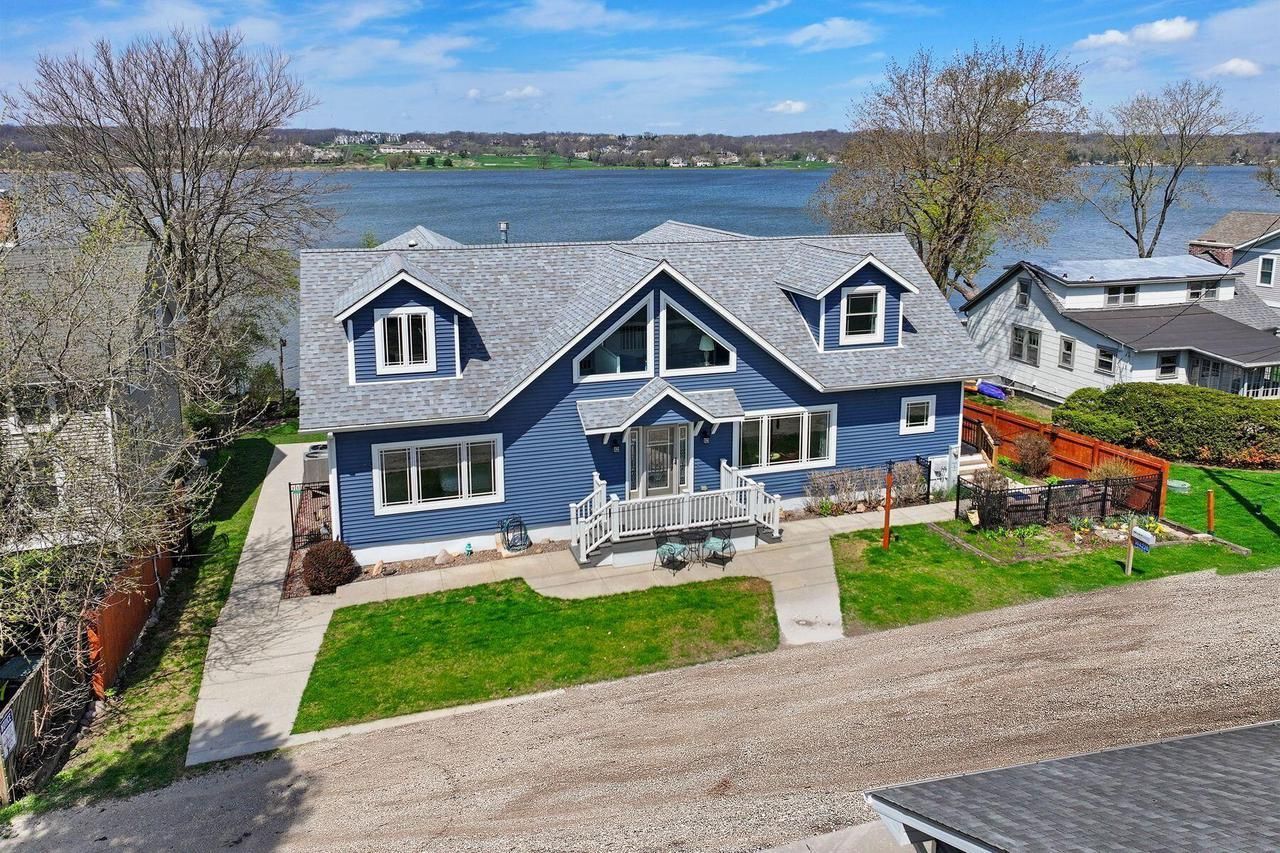 First time available! 6BR/3.1BA home on Lake Como's south shore in Lake Geneva with panoramic views of Geneva National's championship golf courses. 6,199 sf ft with lake views from almost every room. 85' of level shoreline, large lakefront yard, and private pier for your boat. Great room features oversized picture windows framing the lake. Two main level bedrooms. Finished walk-out basement with roughed-in plumbing for a future bath. Fully furnished and turnkey with an established book of business. Ideal as a vacation home, vacation rental, or primary residence. Extra-deep 3.5-car garage with workshop and skylights. Recent updates: roof, siding, windows, deck, furnaces, A/C units, water heater, well and pump. Walk to Mars Resort, The Getaway at the French Country Inn & The Lodge Hotel.